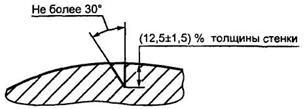 - глубина (высота) h устанавливается равной (10 ± 1,5) % толщины стенки трубы;