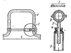 Все компенсаторы перед их окончательным креплением к трубопроводу должны быть растянуты или сжаты на величину, указанную в проекте (от 50 до 100% теплового удлинения участка трубопровода). Растяжку применяют для «горячих» линий трубопровода, а сжатие для «холодных». Операция растяжки или сжатия называется холодным натягом трубопровода и производится для того, чтобы уменьшить напряжение в металле при тепловом удлинении трубопровода. Она может быть выполнена предварительно, до установки компенсатора на место или непосредственно на трубопроводе. Для предварительной растяжки применяют винтовое приспособление (рис. 130). Перед растяжкой замеряют длину компенсатора в свободном состоянии, а затем путем вращения гайки разводят его на необходимую величину.